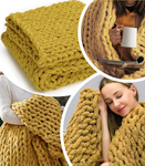 KOC Z DZIANINY 120 X 120 MUSZTARDOWY NARZUTA SZENILOWA PLECIONA MIĘKKA GRUBA OZDOBNA WYTRZYMAŁA NA SOFĘ ŁÓŻKO FOTEL