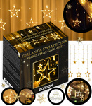 GIRLANDA ŚWIĄTECZNA GWIAZDKI LED CIEPŁA BIEL RÓŻNE TRYBY ŚWIECENIA KURTYNA ŚWIĄTECZNA Z HACZYKAMI