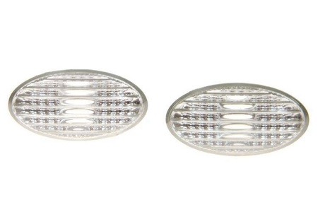 Dwa białe kierunkowskazy, oraz dwie żarówki w kolorze pomarańczowym oryginalnie zapakowane. Kierunkowskazy są identycznych wymiarów jak oryginalne pomarańczowe montowane standardowo w danym modelu auta. Jednak wygląd oraz efekt migania jest dużo lepszy.