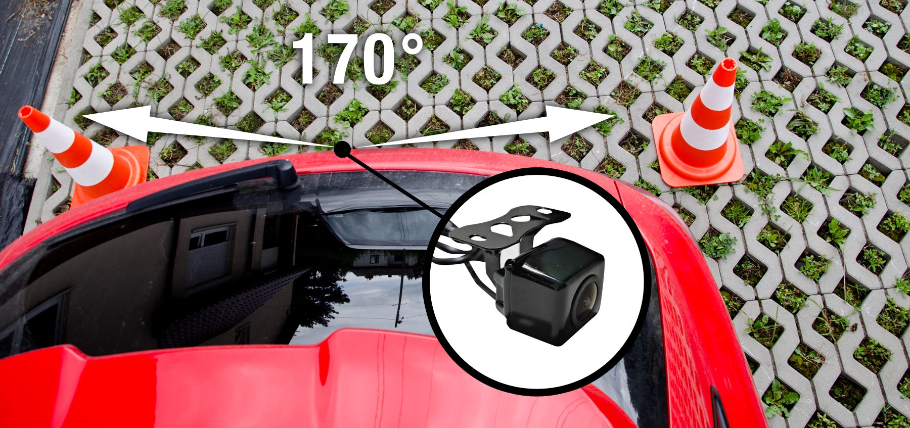 - Kamera cofania w metalowej obudowie z super szerokim kątem widzenia 170° 12V
