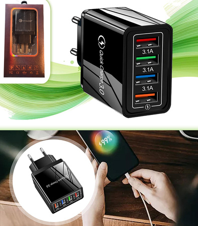 ŁADOWARKA SIECIOWA SZYBKA 4 X USB ADAPTER QUICK CHARGE 3.0 UNIWERSALNY