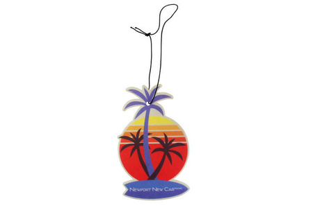 Papierowa zawieszka w kształcie palemek, do umieszczenia na lusterku wstecznym.