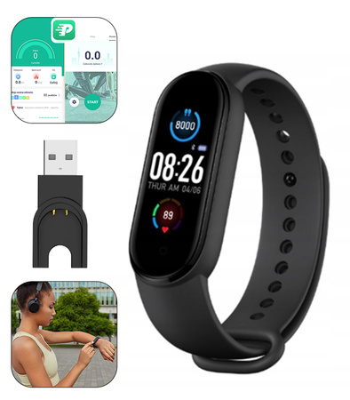 SMARTBAND OPASKA SPORTOWA M5 SMARTWATCH ZEGAREK DO ĆWICZEŃ KROKOMIERZ POMIAR CIŚNIENIA TĘTNA