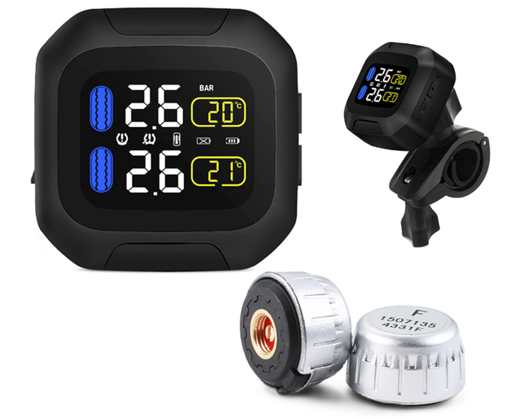 Doskonały zestaw zdalnego pomiaru ciśnienia i temperatury kół dla motocykli.