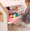 Biurko dla dzieci to mebel, który łączy w sobie dwie funkcje, służy jako biurko do nauki i może pełnić funkcję drewnianego sklepu-bazarku do zabawy.