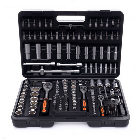 Cały zestaw składa się z 292 różnych elementów, które zapewnią odpowiedni dobór narzędzia do potrzeb. Narzędzia wykonane są z utwardzanej stali chromowo-wanadowej (CrV) przeznaczonej dla narzędzi warsztatowych. Chrom gwarantuje odporność stali na korozję, utlenianie, ścieranie i dużą wytrzymałość na wysokie temperatury. Dodatek wanadu hamuje wzrost ziaren podczas obróbki, zwiększając jednocześnie ciągliwość zarówno postaci hartowanej, jak i odpuszczonej.