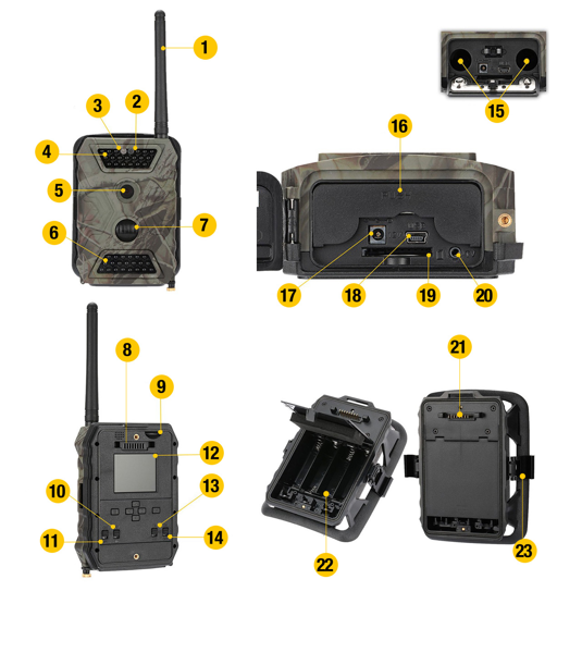 - Zasilanie- 4x lub 8x akumulator AA (czas pracy do 6 miesięcy przy ośmiu akumulatorach w zależności od jakości sygnału GSM, ilości wzbudzeń oraz czasu użycia podświetlenia IR), DC 6V