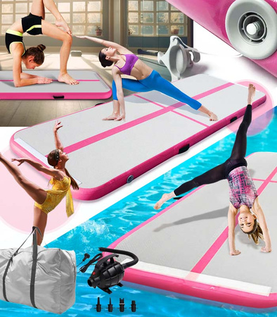AIRTRACK 3 M RÓŻOWY ŚCIEŻKA AKROBATYCZNA MATA GIMNASTYCZNA MATERAC DMUCHANY MOCNY POMPKA TORBA DO ĆWICZEŃ ZABAWY DLA DZIECI DOROSŁYCH