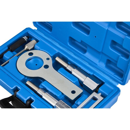Profesjonalny przyrząd do blokowania kół rozrządu marki Kraft&Dele model KD12526. Zestaw umożliwia unieruchomienie kół zębatych rozrządu w pozycji serwisowej, podczas wymiany paska rozrządu. Specjalny kształt blokad pozwala na precyzyjne ustawienie punktów kontrolnych zapłonu. Blokady unieruchamiają koło zębate rozrządu i wału korbowego oraz koło napinacza paska. Polecane do użytku zawodowego w specjalistycznych serwisach samochodowych. Całość zestawu zapakowana w praktycznej walizkę.