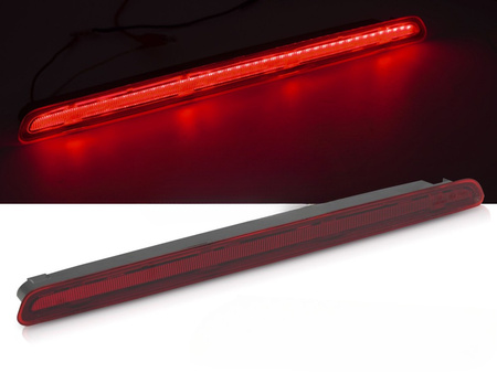 Elegancki, czerwony LED brake light (trzecie światło stopu) z przyciemnioną soczewką, zaprojektowany specjalnie dla modeli VW Transporter T6 (od 2016 r.) oraz T6.1 (2019–2022) z tylną klapą typu tailgate.