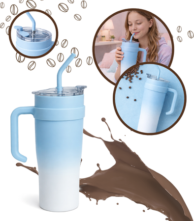 KUBEK TERMICZNY NIEBIESKO-BIAŁY 1200 ML BIDON DUŻY DO SAMOCHODU TERMOS ZE SŁOMKĄ KUBEK PODRÓŻNY TERMOS WIELOKROTNEGO UŻYTKU
