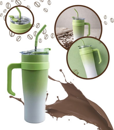 KUBEK TERMICZNY ZIELONO-BIAŁY 1200 ML BIDON DUŻY DO SAMOCHODU TERMOS ZE SŁOMKĄ KUBEK PODRÓŻNY TERMOS WIELOKROTNEGO UŻYTKU