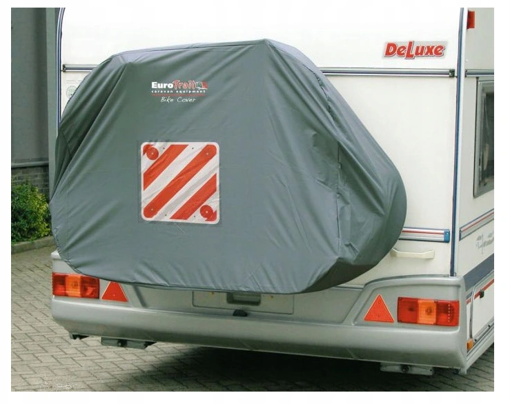 Przeznaczony do osłony bagażnika rowerowego mocowanego z przodu (na dyszlu) przyczepy kempingowej
