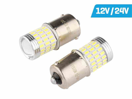 Żarówka VISION R5W/R10W BA15s 12/24V 54x 3014 SMD + 3x 3030 SMD LED, nonpolar, CANBUS, biała, 2 szt.